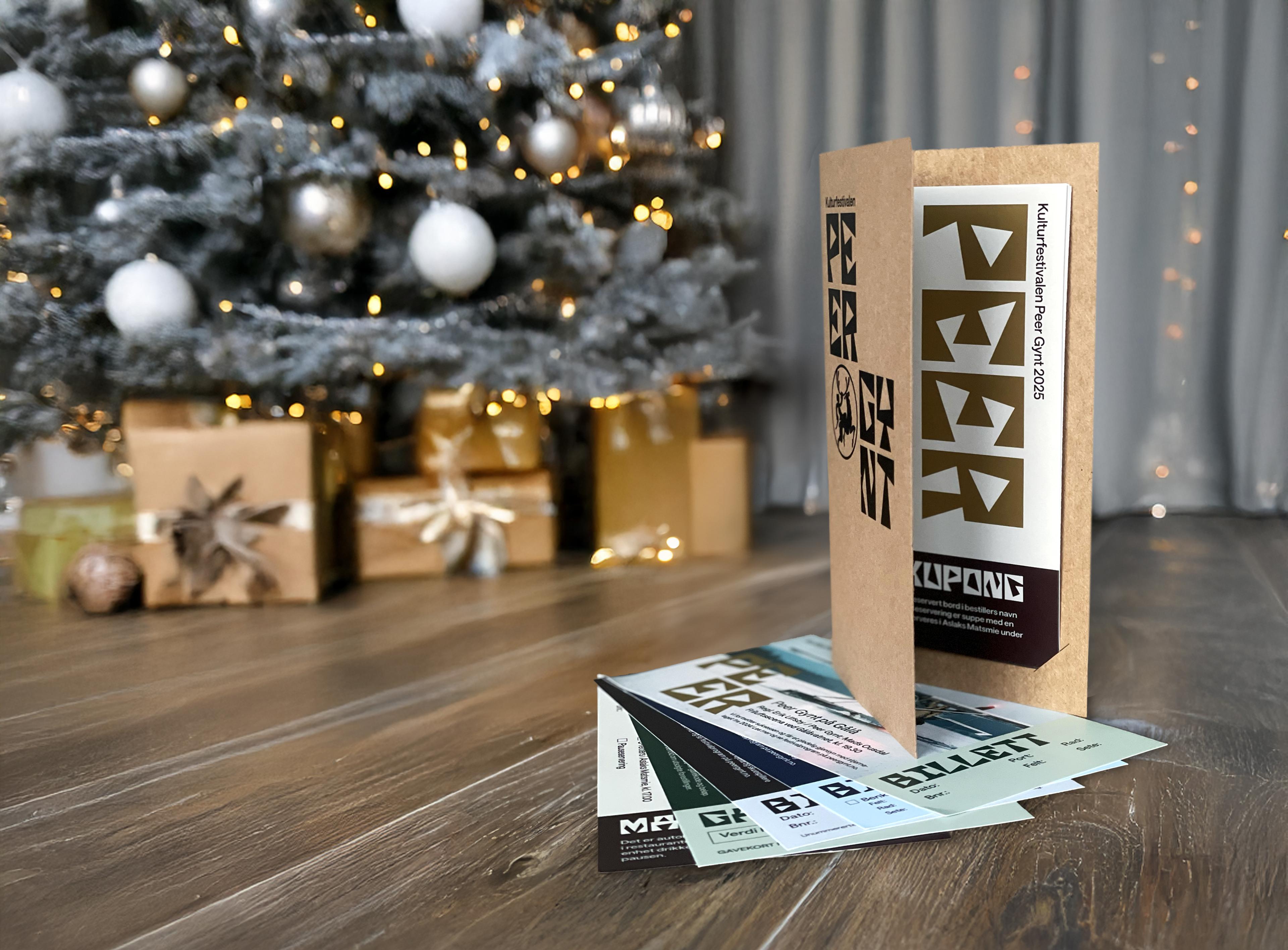 For en tilleggsum får du billetter til forestillingen montert i et elegant kort hvor du kan skrive en personlig hilsen - perfekt til å legge under juletreet! Pris 120,-
